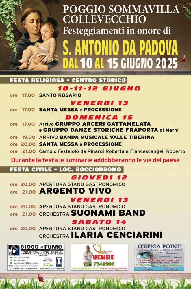Dal 12 al 14 giugno a Poggio Sommavilla località Bocciodromo, avranno inizio i festeggiamenti in onore di