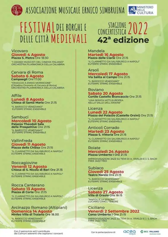 La stagione musicale del Festival è sponsorizzata da Acea acqua e dalla Bcc di Paliano.