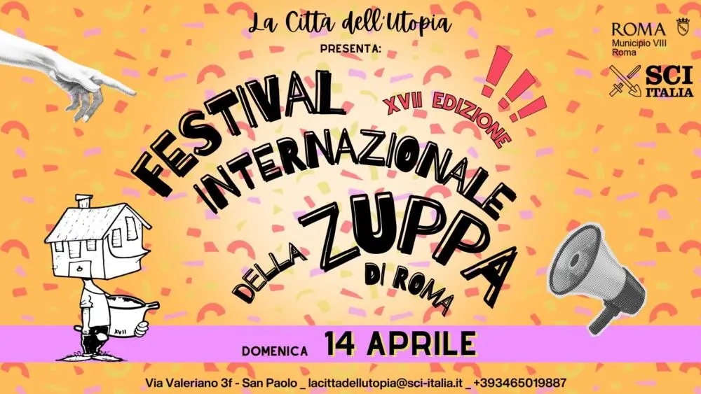 Appuntamento domenica 14 aprile 2024 presso il Casale Garibaldi, sede de La Città dell’Utopia (Via Valeriano 3F, San Paolo, Roma), un evento rivolto agli abitanti di tutta Roma e non solo! Il Festival Internazionale della Zuppa di Roma è un evento a cui possono partecipare tutti: associazioni, collettivi, famiglie e singoli cittadini.