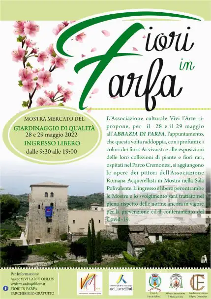 L’Associazione culturale Vivi l’Arte ripropone, per il 28 e il 29 maggio all’Abbazia di Farfa l’appuntamento, che questa volta raddoppia, con i profumi e i colori dei fiori.