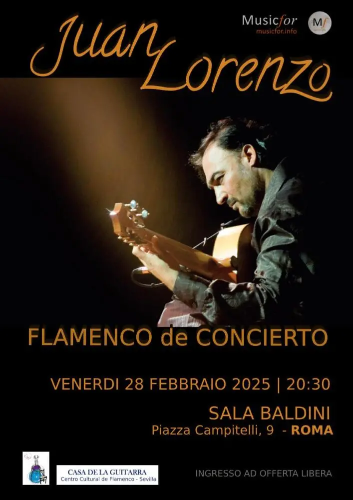 Chitarrista flamenco, Juan Lorenzo si è imposto nel panorama concertistico europeo. Ha tenuto più di 2000 concerti, collaborando con alcune delle figure più prestigiose del Flamenco internazionale, quali i chitarristi José Luis Postigo, Victor Monge “Serranito”, Manitas de Plata, Merengue de Corboba, i cantaores José de la Tomasa, Segundo Falcon, i bailaores José Greco, Antonio Marquez, Manolo Marin, Joaquin Grilo. Ha collaborato anche con artisti pop, tra cui Andrea Bocelli, Mario Reyes dei Gipsy Kings, Jethro Tull, Tony Esposito, Al di Meola, Pino Daniele. Nel 2013 suona per la prestigiosa “Università de Sevilla” nella più grande istituzione al mondo, la “Cattedra de Flamencologia”. Nel 2018 riceve il premio Internazionale alla carriera “Maison des Artistes” nell’Aula Magna dell’Università La Sapienza di Roma. Nel 2021 partecipa a Lugano (Svizzera) al festival Internazionale della Chitarra Flamenca affiancando i più grandi nomi del concertismo flamenco quali Serranito, Manolo Franco, Paco Pena, Javier Conde, Dani de Moron.