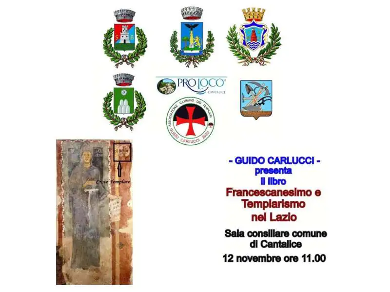 Il templarista Guido Carlucci, dopo la conferenza tenuta a Ponticelli Sabino il 20 agosto scorso dove ci ha fatto conoscere il sarcofago templare, unico in Italia, ora ci presenta il suo ultimo libro “Francescanesimo e Templarismo nel Lazio” con il quale ci fa conoscere la storia templare sul nostro territorio attraverso i simboli dei Cavalieri Templari da lui scoperti.