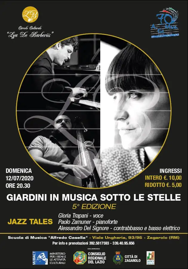 Il Circolo Culturale Lya De Barberiis di Zagarolo organizza il concerto Giardini di Musica sotto le Stelle, Massimiliano Negri Mauro Restivo e la scuola di musica Alfredo Casella..