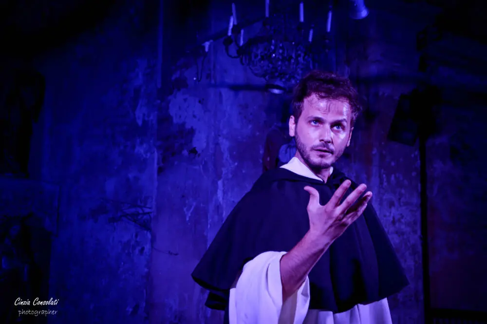 Giordano Bruno è stato uno dei pensatori più controversi dell’età della Rinascita, non solo per le sue teorie astronomiche e filosofiche, ma anche per la sua opposizione alla tradizione religiosa cristiana dell’epoca. La sua morte per eresia ha reso immortali la ricerca costante della verità e la libertà di pensiero, anche quando essi sono lontani dalle norme accettate, eliminando i limiti dettati dai pregiudizi o i dogmi imposti come verità indiscutibili. Una mente eccelsa che impiega la sua vita per compiere la rivoluzione dello spirito e della coscienza dell’uomo, che punta all’arricchimento di ogni persona, senza differenza di alcun genere. Giordano Bruno. Alla Luce Delle Stelle cerca di restituire al pubblico l’immensità di quest’uomo: gli infiniti cerchi concentrici che Bruno è stato in grado di creare nel corso della sua incredibile esistenza, lottando per affermare la libertà di pensiero, punto di partenza essenziale per elevare la vita di ogni essere vivente dell’Universo. La messa in scena ci trascina nella mente del filosofo che rompe la quarta parete fin da subito e senza indugi, restituendo nella maniera più semplice ed efficace i punti cardini del suo pensiero.