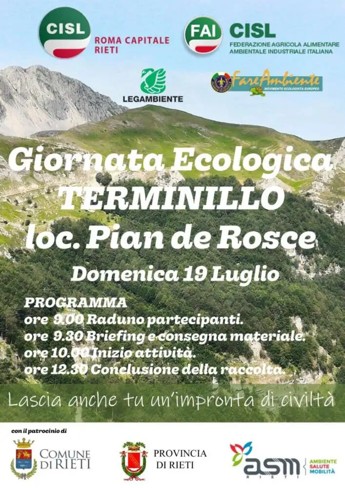 La Cisl Roma Capitale e Rieti, insieme alla Fai Cisl, Legambiente e FareAmbiente, organizza la seconda “Giornata Ecologica” che si svolgerà domenica 19 luglio 2020.