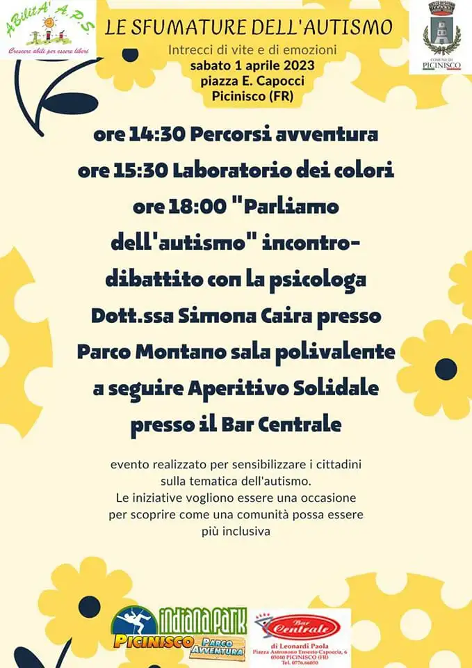 Il 1 aprile, in occasione della Giornata Mondiale della Consapevolezza sull’Autismo, si terrà a Picinisco una giornata dedicata.