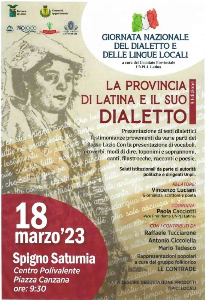 Sabato 18 marzo 2023, alle ore 09.30, presso la Sala convegni del Centro Polivalente di Spigno Saturnia, si svolgerà la 9^ edizione della giornata del dialetto e delle lingue locali, organizzata dall’UNPLI di Latina.