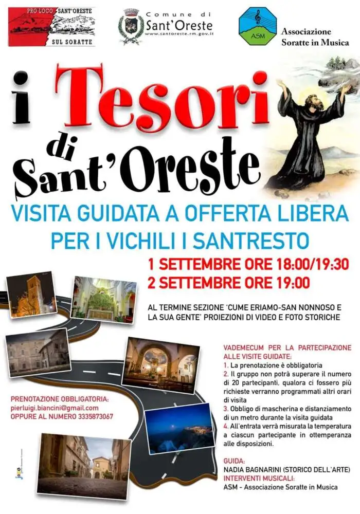 I TESORI DI SANT’ORESTE VISITA GUIDATA A OFFERTA LIBERA PER I VICHILI I SANTRESTO 01 SETTEMBRE ORE 18:00/19:30 02 SETTEMBRE ORE 19:00 GUIDA: NADIA BAGNARINI (STORICO DELL'ARTE) INTERVENTI MUSICALI DELLA ASM AL TERMINE SEZIONE ‘CUME ERIAMO-SAN NO...