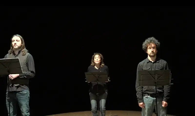 Una messa in scena sobria ed efficace, tre giovani attori si alternano in una scansione ritmica di voci e partitura musicale, portandoci come gli spiriti nel testo di Dickens nella magica notte del Natale quando tutto sembra possibile, in un viaggio tra passato, presente e futuro nelle miserie dell’animo umano, ma anche nelle sue grandi risorse.