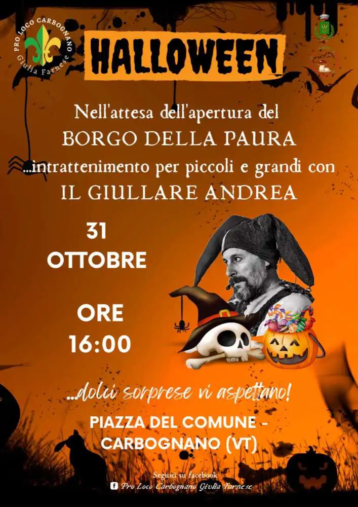 Attenzione‼️ Ad Halloween alle ore 16:00 il Giullare Andrea vi aspetta in piazza del Comune! Un entusiasmante pomeriggio all’insegna del divertimento e di dolci sorprese! A seguire l’ingresso nel Borgo della Paura! Non mancate!...