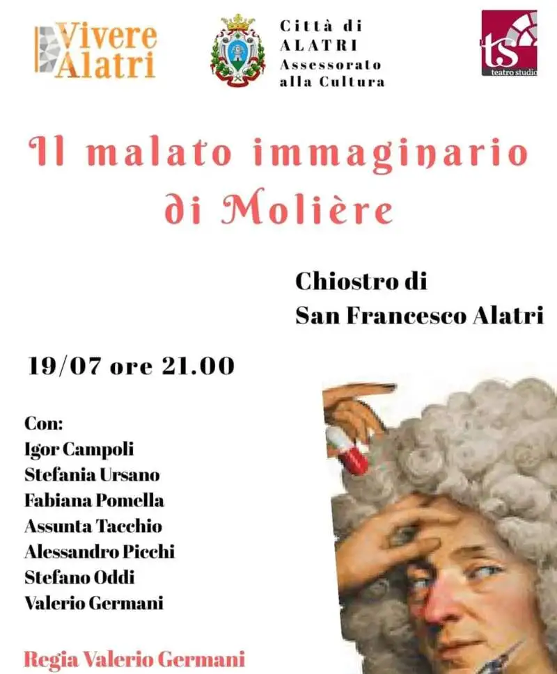 Ad Alatri, presso la suggestiva location del Chiostro di San Francesco a piazza Regina, andrà in scena la commedia-balletto di Moliere, dal titolo ‘Il malato immaginario’.