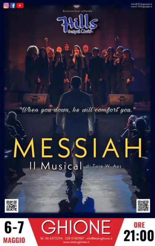 La vita di Gesù dalla nascita all’ascensione è al centro del musical “Messiah”, che arriva per la prima volta a Roma in anteprima il 6 e 7 maggio presso il Teatro Ghione. Una storia nella storia. L’autore dell’opera, Tore W. Aas, è il direttore dell’ Oslo Gospel Choir, che ha scritto canzoni per decenni per il suo coro, conosciuto e acclamato in tutta Europa. Tore ha sempre avuto l’ambizione di comporre un musical per l’Oslo Gospel Choir e il suo progetto è diventato realtà con la messa in scena di una bellissima opera. L’arrivo in Italia di questo spettacolo avviene a seguito di un importante incontro tra il bravissimo autore e il coro romano 7hills Gospel Choir, creato e diretto dal M^ Gianluca Buratti. Da questo incontro è nata la voglia e l’esigenza di far approdare anche nel nostro paese il suo musical “Messiah”. E’ stato amore a prima vista: “Non pensavo che anche in Italia ci fossero dei cori così bravi e preparati!” ha dichiarato l’autore. Ed ecco, quindi, che il 6 e 7 maggio al Teatro Ghione la storia di Gesù sarà raccontata con più di 20 nuove canzoni su diversi momenti della vita, le persone che hanno assistito alle sue opere, il suo messaggio e le sue parabole. I brani, tutti in chiave moderna, coinvolgono da subito lo spettatore con ritmi vivaci e melodie accattivanti, mettendo nel giusto risalto l’azione scenica ed esaltandone il pathos e il significato. Il musical è stato rappresentato la prima volta lo scorso 25 marzo a Drachten, nei Paesi Bassi, e ha riscosso notevole successo.
