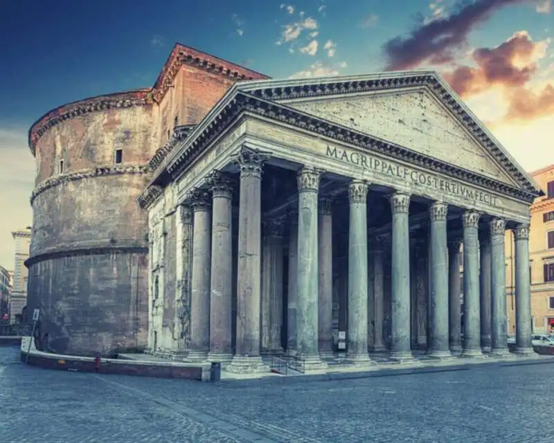 Una visita guidata per scoprire insieme la straordinaria storia di uno dei monumenti simbolo di Roma: il Pantheon. Edificato la prima volta da Agrippa, venne poi ricostruito e notevolmente ampliato dall’imperatore Adriano nel II secolo d.C. Del fasto antico è rimasta perfettamente conservata fino ai nostri giorni l’imponente mole e la struttura architettonica poiché il monumento romano, donato nel 609 a Bonifacio IV, venne consacrato e trasformato nella chiesa dedicata a Santa Maria ad Martyres. Ed è proprio qui che, nei secoli successivi, furono sepolti importanti personaggi illustri, tra cui Raffaello Sanzio e i primi re d’Italia: Vittorio Emanuele II e il figlio Umberto I con la consorte, la regina Margherita. Una visita guidata al Pantheon, piena di aneddoti e curiosità, assolutamente da non perdere: ti aspettiamo!