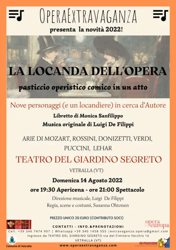 Prenotate il vostro posto scrivendo a extravaganza.opera@gmail.com oppure inviando un whatsapp al numero 340-1458555 oppure chiamando i numeri 346-7474897 e 0761-485247.