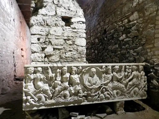 Scenderemo per circa 8 metri per trovare i resti dell’antica chiesa paleocristiana e i resti dell’antico quartiere romano legato, nel bene e nel male, al fiume Tevere.