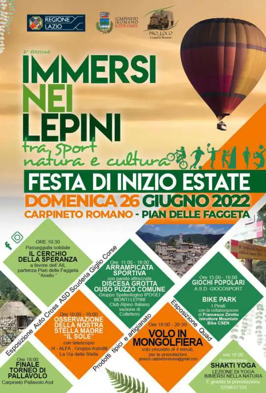 Immersi nelle nostre montagne tra speleologia, astrofilia, degustazione, meditazione, sport, giochi popolari, solidarietà, bike e… volando in una sensazionale esperienza in mongolfiera.