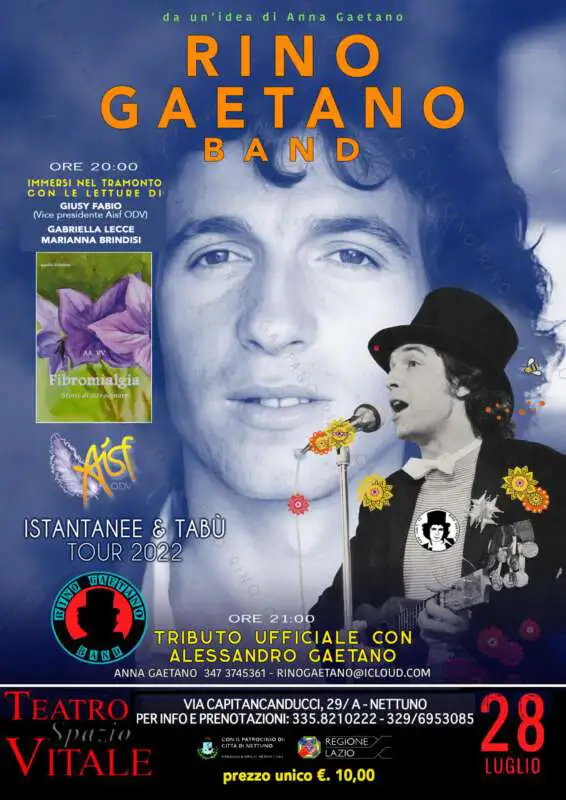 Vi aspettiamo per una serata con l’intramontabile musica di Rino Gaetano e la lettura di alcuni passi del libro “Fibromialgia storie di vite segnate” presso il Teatro Spazio Vitale di Nettuno giovedì 28 luglio…