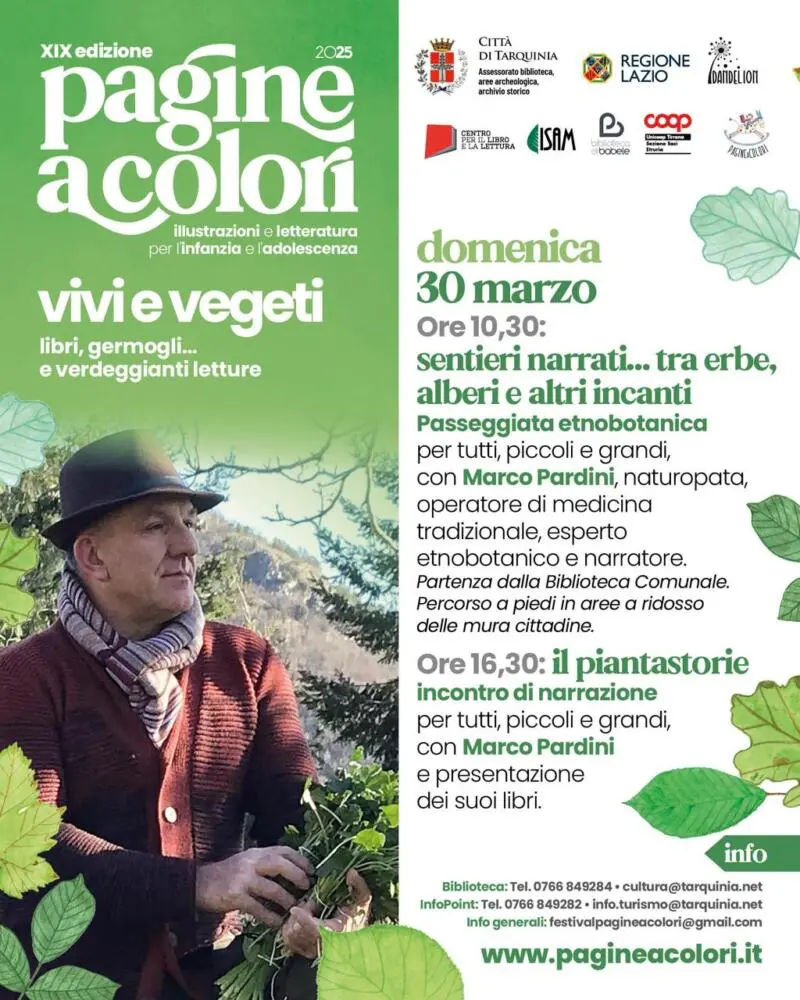 Il festival PAGINEaCOLORI propone per domenica 30 marzo, un’opportunità imperdibile per riscoprire la natura in compagnia di Marco Pardini, naturopata, operatore di medicina tradizionale, esperto etnobotanico e narratore, che guiderà i partecipanti in un viaggio affascinante tra erbe, alberi e storie incantate. La giornata inizierà alle 10:30 con la passeggiata etnobotanica “Sentieri narrati… tra erbe, alberi e altri incanti”, lungo il suggestivo tracciato delle mura di Tarquinia.