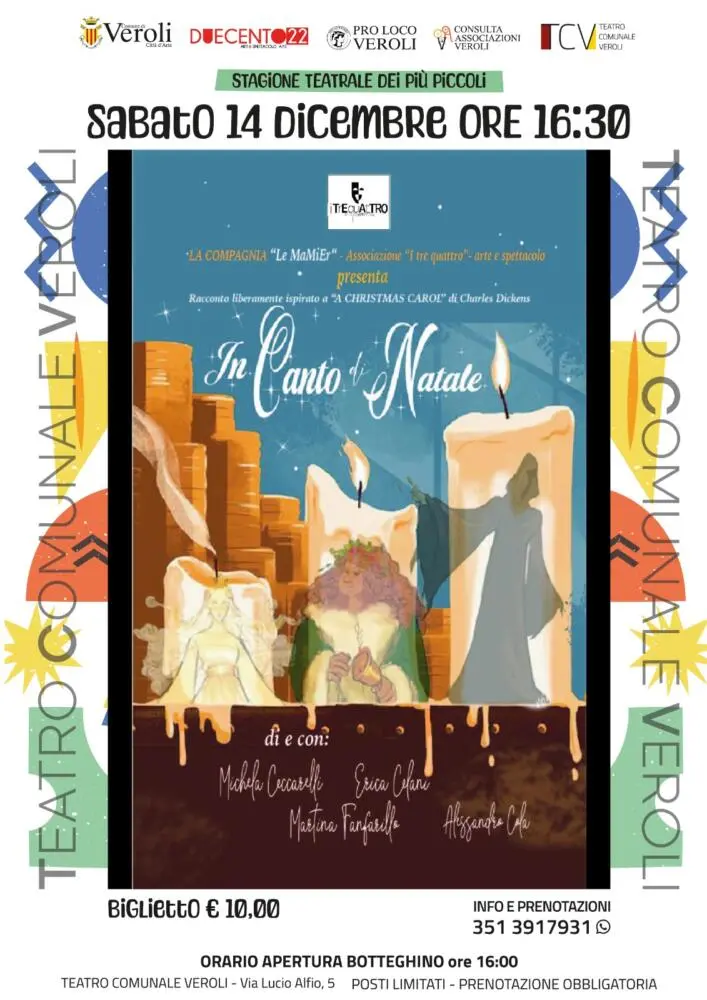 Sono quattro gli appuntamenti previsti dal cartellone della stagione dei più piccoli e si alza il sipario sabato 14 dicembre alle ore 16.30 con lo spettacolo “Incanto di Natale” della compagnia teatrale Le MaMiEr che ci immergerà nell’atmosfera natalizia. Lo spettacolo si ispira liberamente al celeberrimo racconto “A Christmas Carol” di Charles Dickens che tratta di tutti gli aspetti del Natale portando però ad una profonda riflessione sui reali valori su cui questa festa dovrebbe fondarsi.