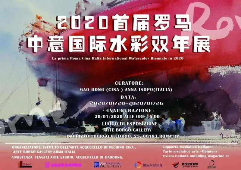 Lunedì 20 gennaio 2020 presso lo spazio espositivo di Arte Borgo Gallery in Borgo Vittorio 25 Roma verrà inaugurata la prima Biennale Internazionale di Acquerelli organizzata dall’Istituto d’arte dell’Acquerello di Pechino , curata da Cao Dong e Anna Isopo