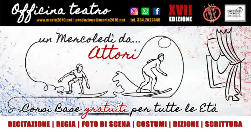 L’Ass. Cult. Marte 2010 apre ufficialmente le iscrizioni ai laboratori di recitazione di livello base gratuiti della XVII edizione di Officina Teatro.