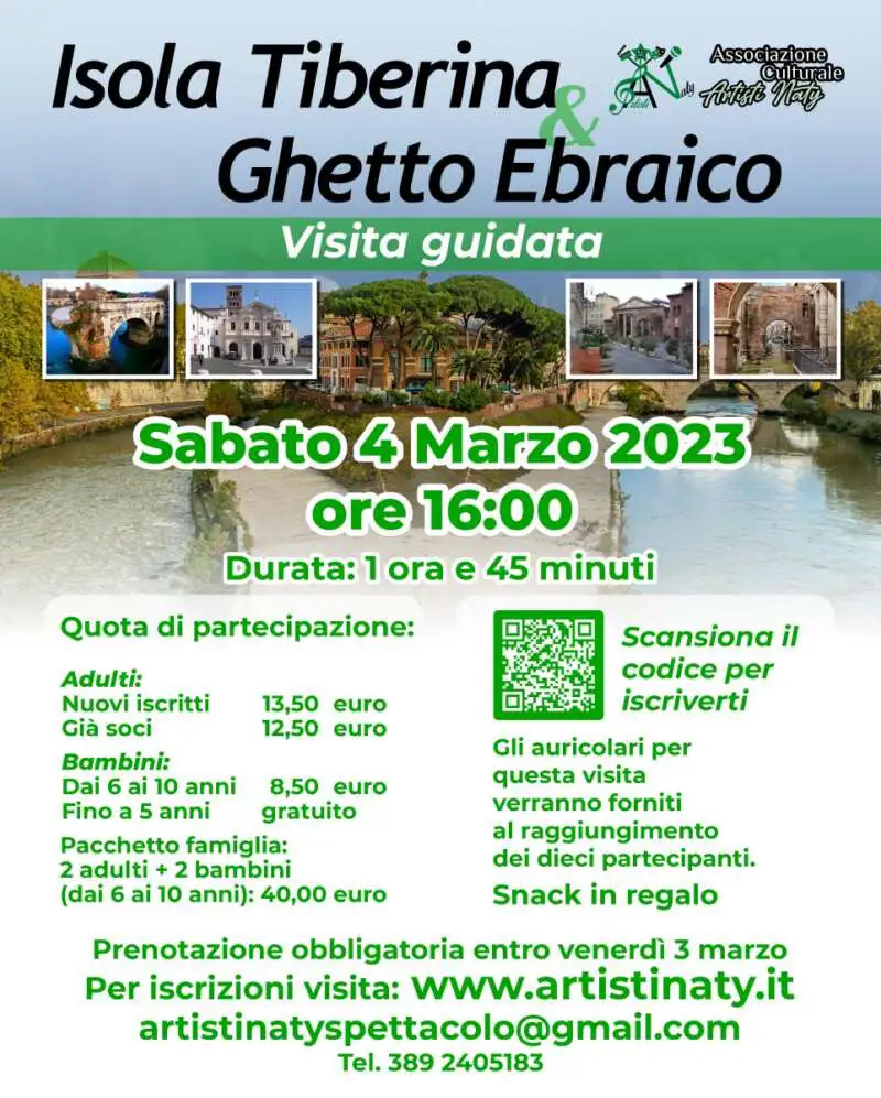 Arriveremo al Ghetto attraverso l’antico ponte Fabricio, mentre sull’altra riva potremo osservare dall’esterno la piccola chiesa di S. Gregorio della Divina Pietà, luogo dove si tenevano le prediche coatte per convertire gli ebrei; a sinistra la Sinagoga, o Tempio Maggiore, realizzata nel 1904 dagli architetti Costa e Armanni. Inoltre ci ritroveremo davanti all’antico Portico d’Ottavia e alla chiesa di S. Angelo in Pescheria.