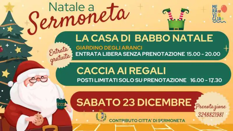 Dalle 15:00 alle 20:00 vi aspettiamo alla Casa di Babbo Natale (Giardino degli Aranci, nei pressi della Cattedrale)