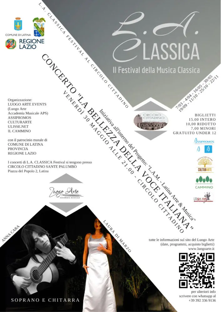 Prosegue la stagione interamente dedicata alla Musica da Camera a Latina: “L.A. CLASSICA Festival” – quinta edizione 2025, all’interno dell’iniziativa “L.A.M. – Latina Arte & Musica”, organizzata da Luogo Arte Events (Luogo Arte Accademia Musicale APS), Assipromos, Cutlurarte, Ulisse.Net e Cammino, con il patrocinio morale del Comune di Latina, della Provincia di Latina e della Regione Lazio