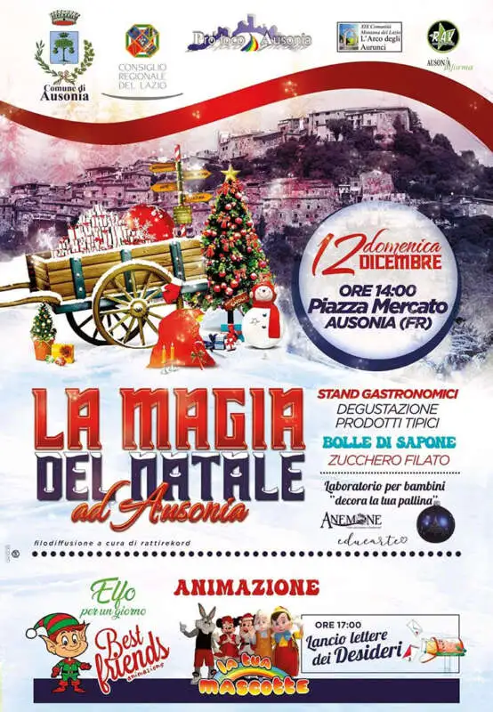 Domenica 12 Dicembre 2021 ad Ausonia in Piazza Mercato appuntamento con l’evento “La Magia del Natale ad Ausonia“.