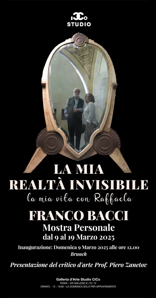 Non mancano, inoltre, preziosi e inconfondibili piccoli flash ironici, carichi di significati profondi, leggibili solo da uno sguardo attento ai dettagli. Utilizzando sia la tecnica analogica, con cui ha iniziato la sua carriera, sia quella digitale, Franco Bacci apre il suo ricco caleidoscopio immaginario, fatto di surreali e sottili “realtà invisibili”.