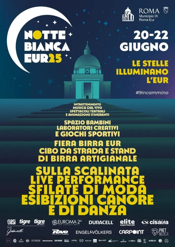 Eur Music Contest (20–21 giugno, Parco Centrale): concorso canoro nazionale legato alla Festa della Musica, con finale sabato sera sulla scalinata.