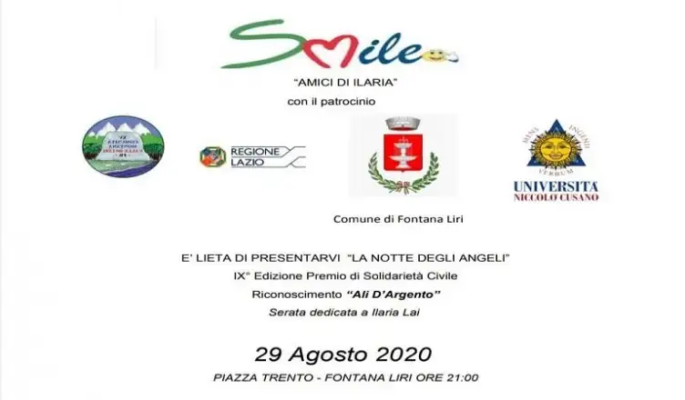 A Fontana Liri il 29 Agosto in Piazza Trento alle ore 21,00 si svolgerà la manifestazione “La notte degli Angeli”, premio Le Ali d’ Argento.
