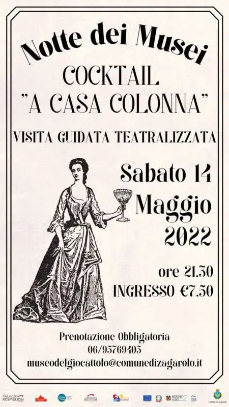 in programma il prossimo sabato 14 maggio. A partire dalle ore 21.30 appuntamento con il cocktail “A casa Colonna”, la visita guidata teatralizzata che accompagnerà i visitatori in una serata all’insegna della cultura.