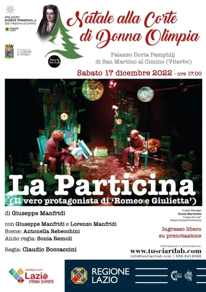 Tuscia Art Lab di Giulia Marchetti, nell’ambito della manifestazione Natale alla Corte di Donna Olimpia, patrocinata dal Comune di Viterbo, presenta La Particina (‘Il vero protagonista di Romeo e Giulietta’) di Giuseppe Manfridi, scrittore e autore teatrale rappresentato in Italia e all’estero.