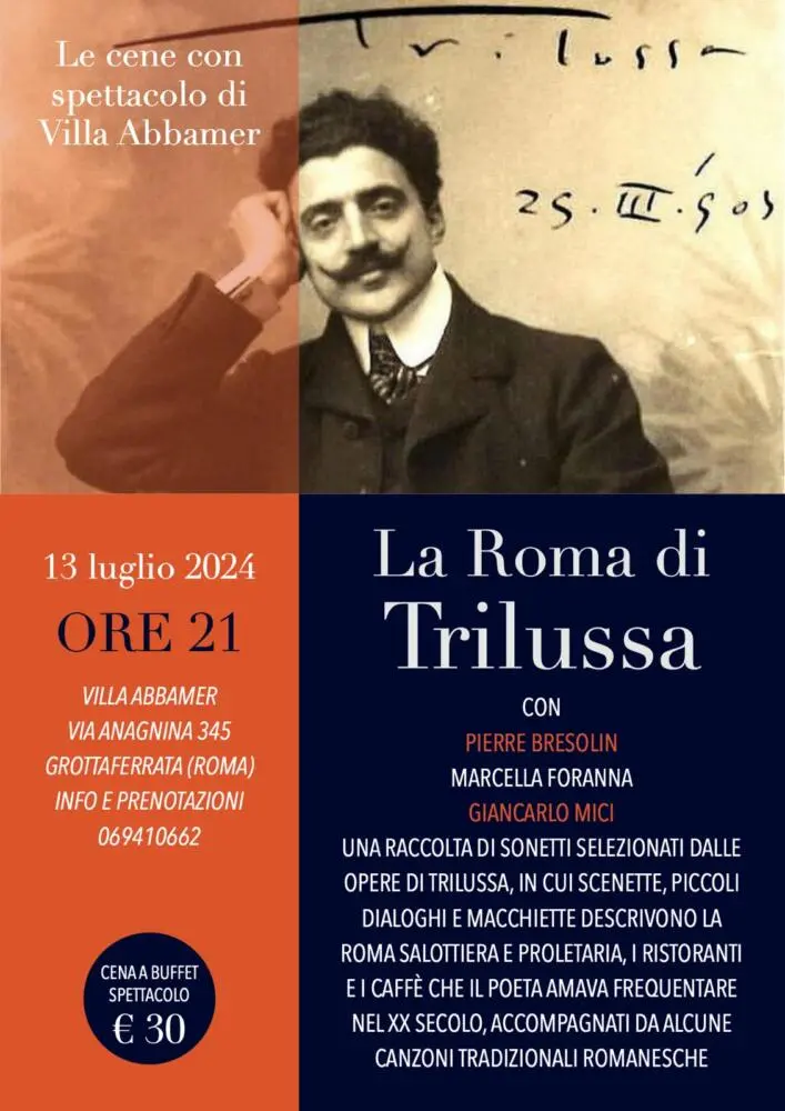 La lettura di alcuni sonetti, scelti dall’opera di Trilussa, permette di descrivere la Roma salottiera e proletaria, i ristoranti e i caffè che il poeta amava frequentare, a cavallo del XIX e XX secolo. Scenette, dialoghetti e macchiette, riprodotti dal grande poeta romanesco, rievocano luoghi e ambienti di una città che tutto il mondo ci ha sempre invidiato e che, purtroppo, non esiste più.
