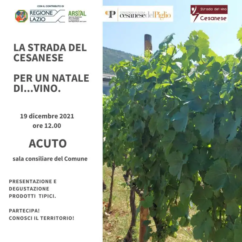 Domenica 19 dicembre alle ore 12.00, ad Acuto, presso la sala consiliare del Comune, avrà luogo una presentazione con degustazione di prodotti tipici locali, offerta dall’associazione “La Strada del Vino Cesanese“.