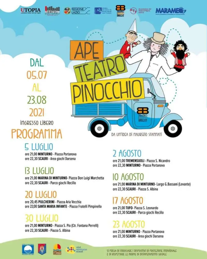 Il Comune di Minturno e il Teatro Bertolt Brecht portano in strada “Ape Teatro Brecht. Pinocchio” dal 5 luglio al 23 agosto.