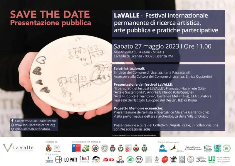 Il Festival internazionale permanente di ricerca artistica, arte pubblica e pratiche partecipative LaVALLE nasce con l’obiettivo di estendere il campo di azione delle attività realizzate sul territorio di Licenza e Civitella (RM) dal Collettivo L’Aquila Reale a partire dal 2020 ad oggi.