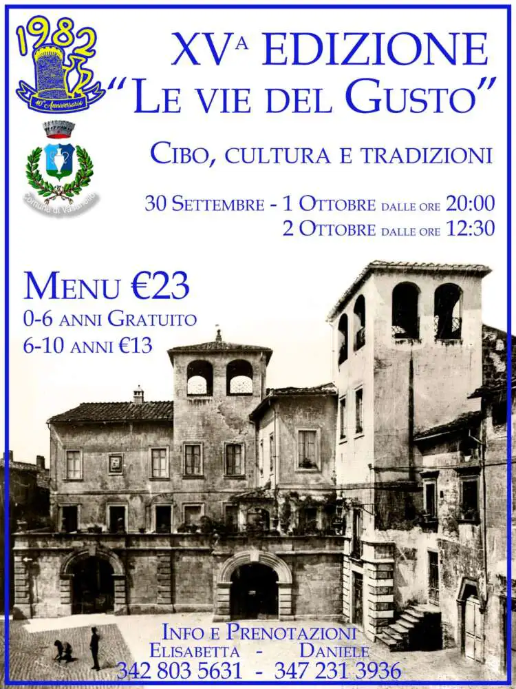 L’appuntamento con Le Vie del Gusto, il percorso itinerante enogastronomico tra piazze e cantine, è dal 30 settembre al 2 ottobre a Vasanello per riscoprire i sapori della tradizione e le vecchie cantine del borgo, in una formula unica di gusto e suggestione.