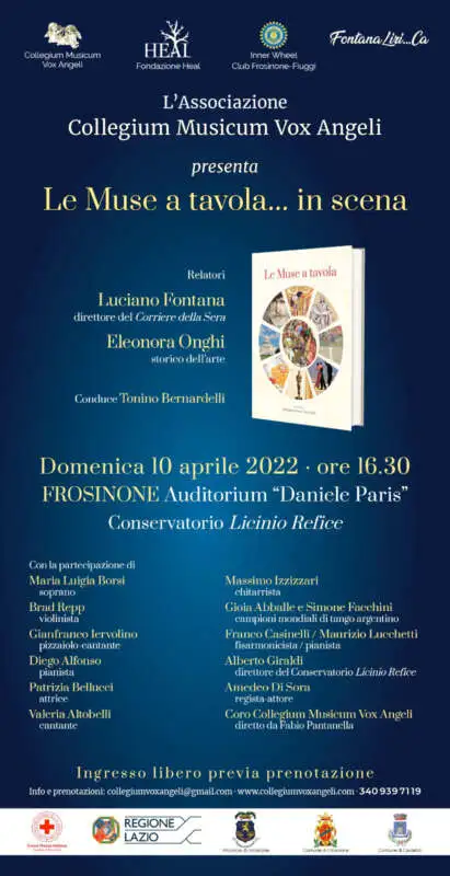 Domenica 10 Aprile 2022 a Frosinone alle ore 16.30 presso l’auditorium “Daniele Paris” del Conservatorio Licino Refice appuntamento con “Le Muse a tavola… in scena”