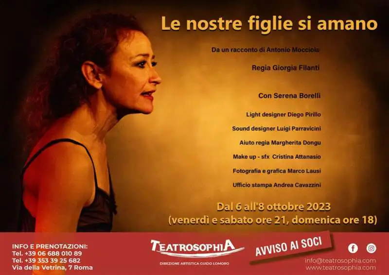 La nuova stagione prende il via nel weekend del 6,7 e 8 ottobre con LE NOSTRE FIGLIE SI AMANO tratto da un adattamento di un testo di Antonio Mocciola. In scena Serena Borelli con la regia di Giorgia Filanti.