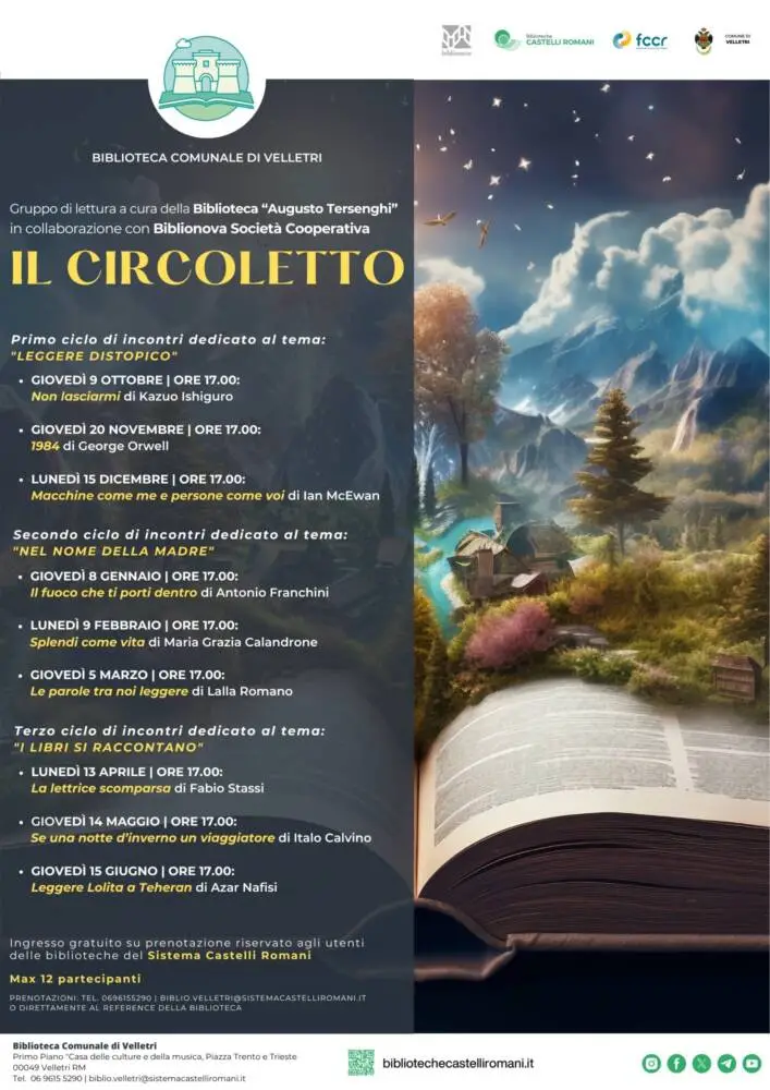 L’incontro è parte del secondo ciclo del progetto Il Circoletto, realizzato dalla biblioteca comunale in collaborazione con Biblionova Società Cooperativa. L’iniziativa è aperta a tutti i lettori adulti interessati a condividere impressioni sui libri letti privatamente e a creare un momento di dialogo e confronto culturale.