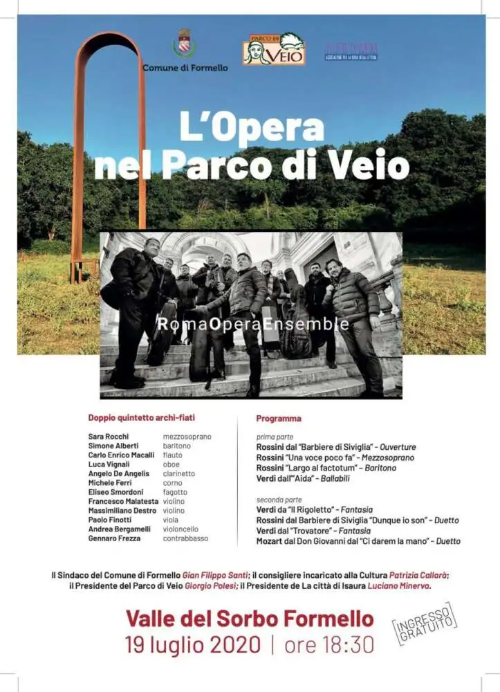In questa fase di ripresa delle attività culturali e nel rispetto dei protocolli sanitari richiesti, “L’Opera nel Parco di Veio” è un Progetto arte/natura finalizzato alla scoperta del meraviglioso territorio naturalistico della Valle del Sorbo attraverso un “percorso musicale” curato dal “Roma Opera Ensemble”, formata da professori d’orchestra del Teatro dell’Opera di Roma, nella tradizione del grande repertorio operistico.