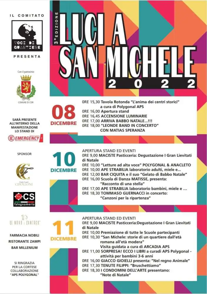 Per il Ponte lungo dell’Immacolata la terza edizione di Luci a San Michele organizzata dal comitato Voci di quartiere.