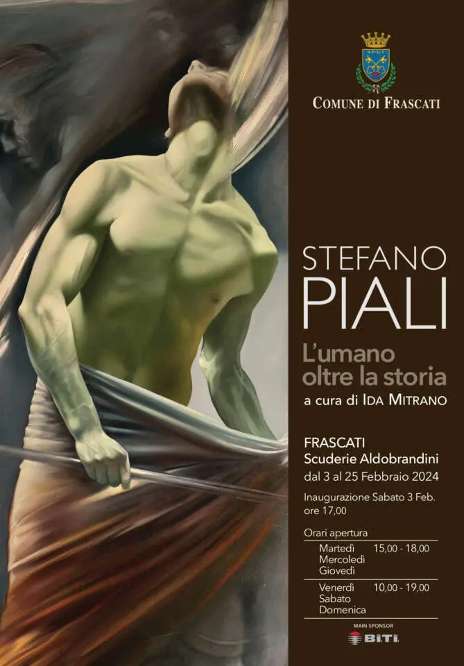 Il suggestivo spazio espositivo delle Scuderie Aldobrandini di Frascati (Piazza Guglielmo Marconi 6) ospita, da sabato 3 a domenica 25 febbraio, “L’umano oltre la storia” di Stefano Piali un artista che, da oltre quarant’anni con il suo personale segno pittorico e scultoreo, si misura in una produzione che lascia ogni volta stupiti, così come ben descritto nel testo critico di Ida Mitrano che apre lo splendido catalogo della mostra.