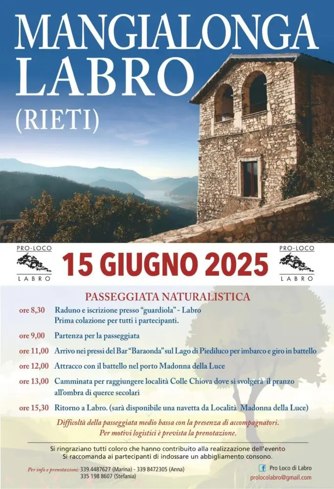 La manifestazione prevede una passeggiata nel territorio di Labro che permette di godere di paesaggi suggestivi, con tappe gastronomiche lungo il percorso.