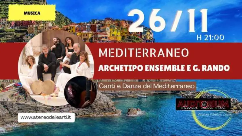 Si anima di atmosfere mediterranee la stagione del Teatro Ateneo diretto da Valentina Zagami (complesso Ateneo delle Arti, via don Torello 120 a Latina). Sabato 26 novembre, a partire dalle ore 21.00, sul palco saliranno i musicisti dell’Archetipo Ensemble e il chitarrista Gianluca Rando, con lo spettacolo “Mediterraneo- Sentieri di Mare”.