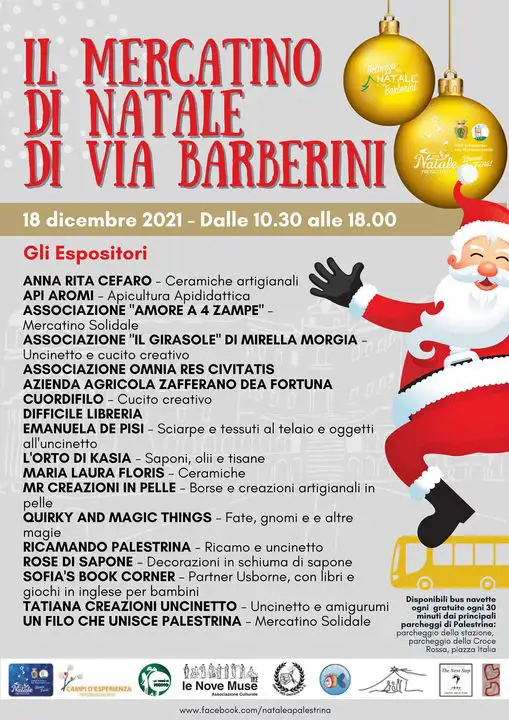 Dalle 10.30 alle 18.00 Mercatino degli artigiani e produttori locali, a cura de Le Nove Muse Onlus, con la partecipazione del mercatino solidale di Un filo che unisce Palestrina