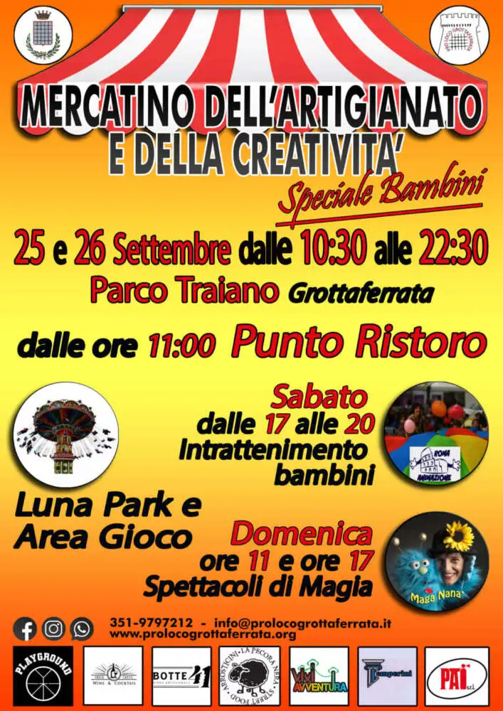 In occasione delle Settembre Grottaferratese , doppio appuntamento sabato 25 e domenica 26 Settembre, come sempre al Parco Traiano di Grottaferrata.