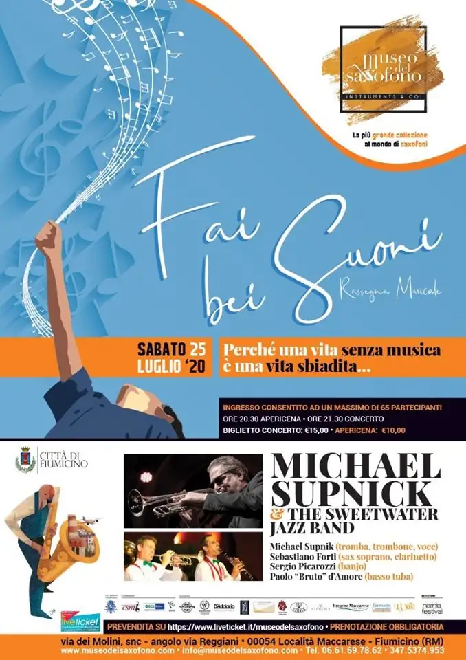Piccole band che si esibivano in parate musicali, le cosiddette “street parades”, organizzate in occasione di feste pubbliche come il Mardi Gras, nel corso delle campagne elettorali, durante l’arrivo o la partenza di un battello o per festeggiare un matrimonio come per accompagnare un funerale… Intrattenimento e divertimento, elementi connaturati in questo tipo di musica, si intrecciano ed amalgamano con la creatività, la cantabilità ed il virtuosismo proprio di tutti i componenti della SWEETWATER Jazz Band, soprattutto del leader Michael Supnick, cantante e multistrumentista, un vero showman che ha calcato i palcoscenici dei più prestigiosi Festival Jazz italiani ed europei.